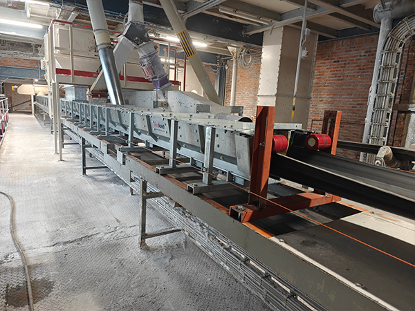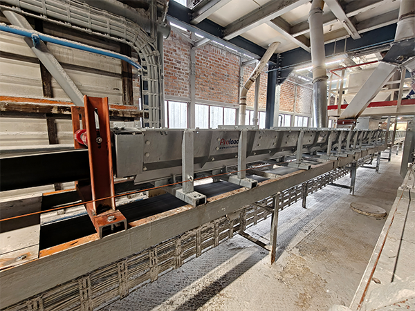 Omdat de klant in het verleden al positieve ervaringen had opgedaan met onze schrapers, was het vertrouwen groot om ook deze uitdaging samen aan te pakken. In plaats van bestrijding werd gekozen voor een structurele oplossing. De kern van de aanpak: het gelijktijdig verbeteren van alle stortpunten op de transportband. Dit resulteerde in de beslissing om een 22 meter lange Proload te installeren, een oplossing die speciaal is ontworpen om materiaalstromen gecontroleerd en stofarm te geleiden.